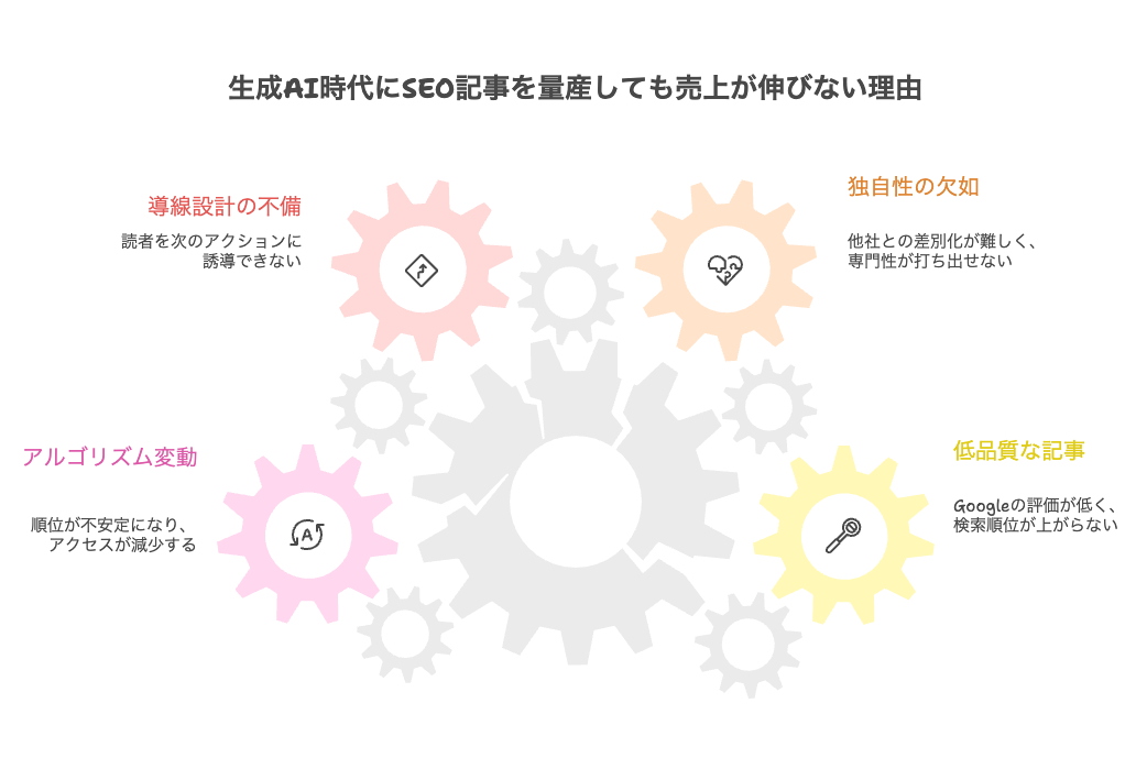 • なぜ生成AIで作ったSEO記事を量産しても売上が伸びないのですか?