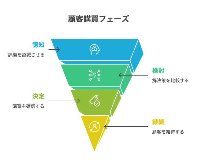 フェーズ別コンテンツ設計:認知→検討→決定→継続